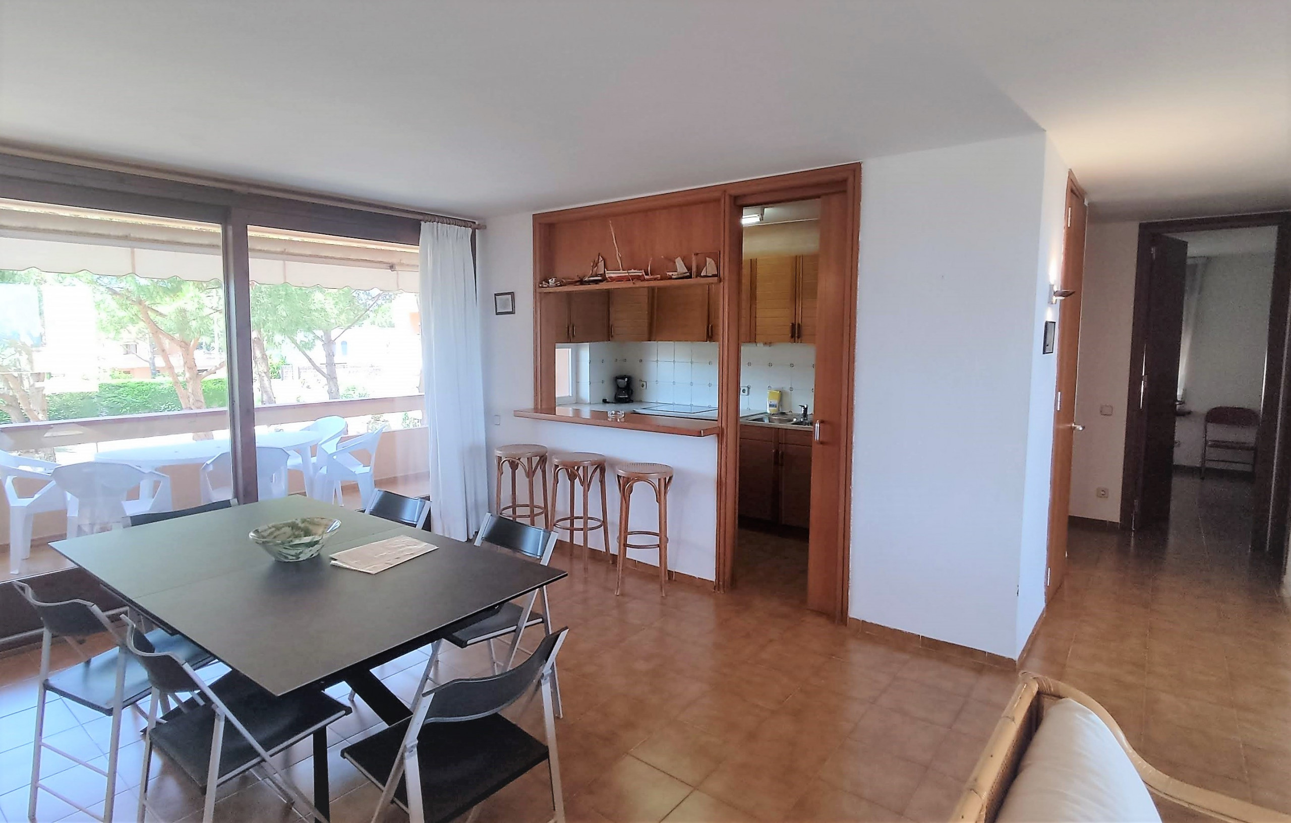 - Terraza con mobiliario de jardín, perfecta para desayunar o relajarse con la brisa marina.