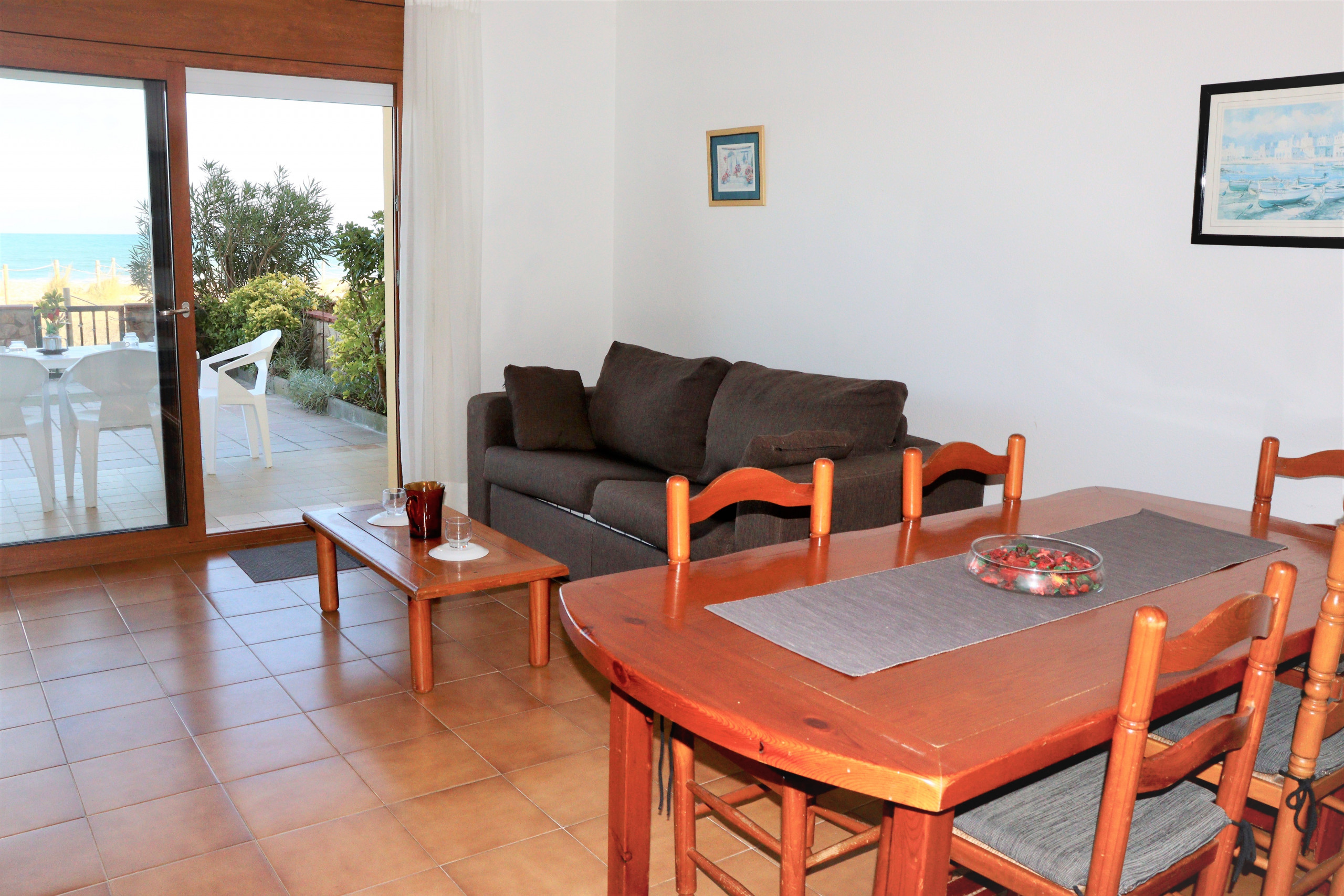 Todo la distribución del apartamento, el acceso directo desde el patio a la playa, la tranquilidad
