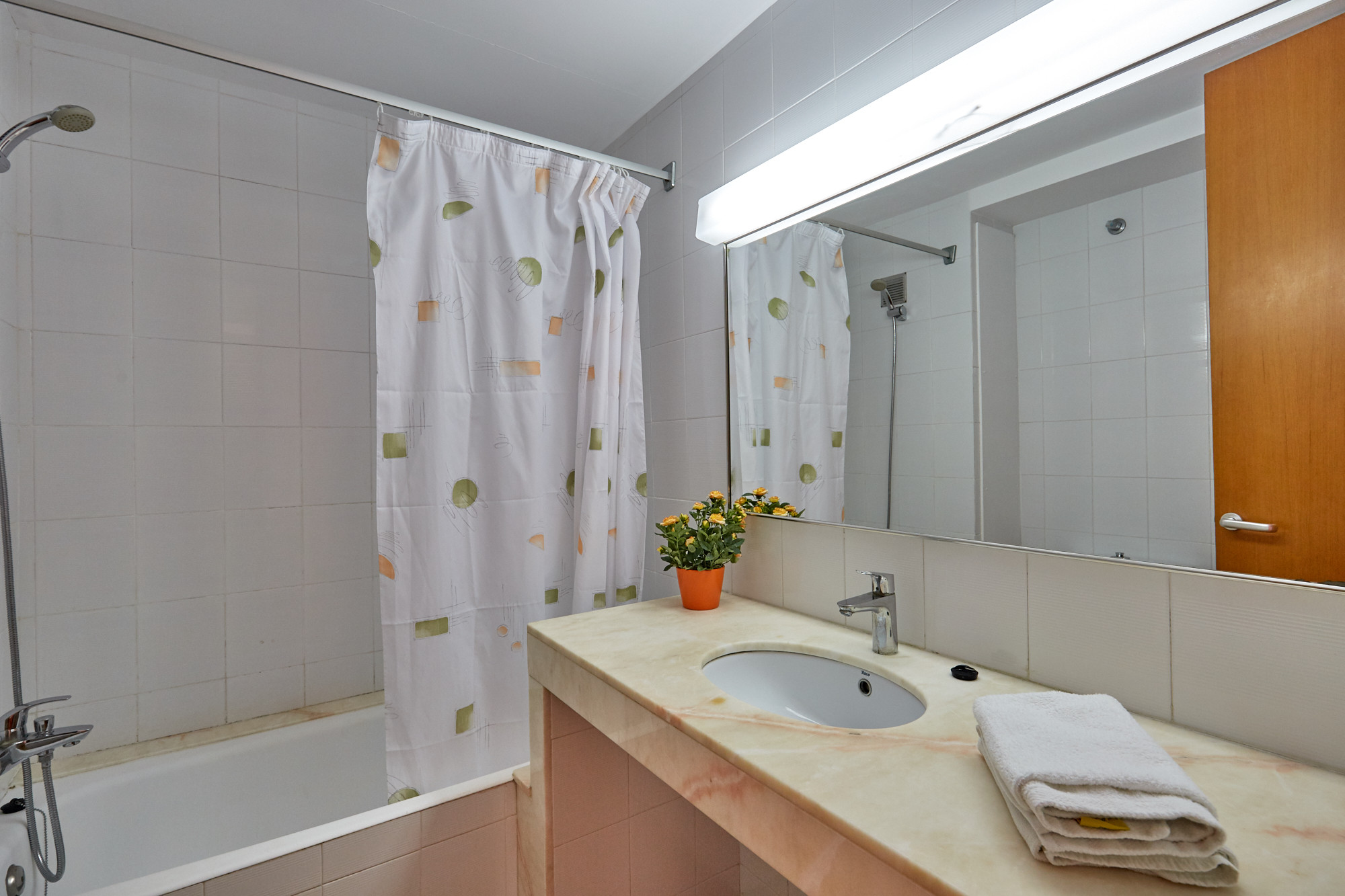 Un bany complet amb dutxa i banyera.