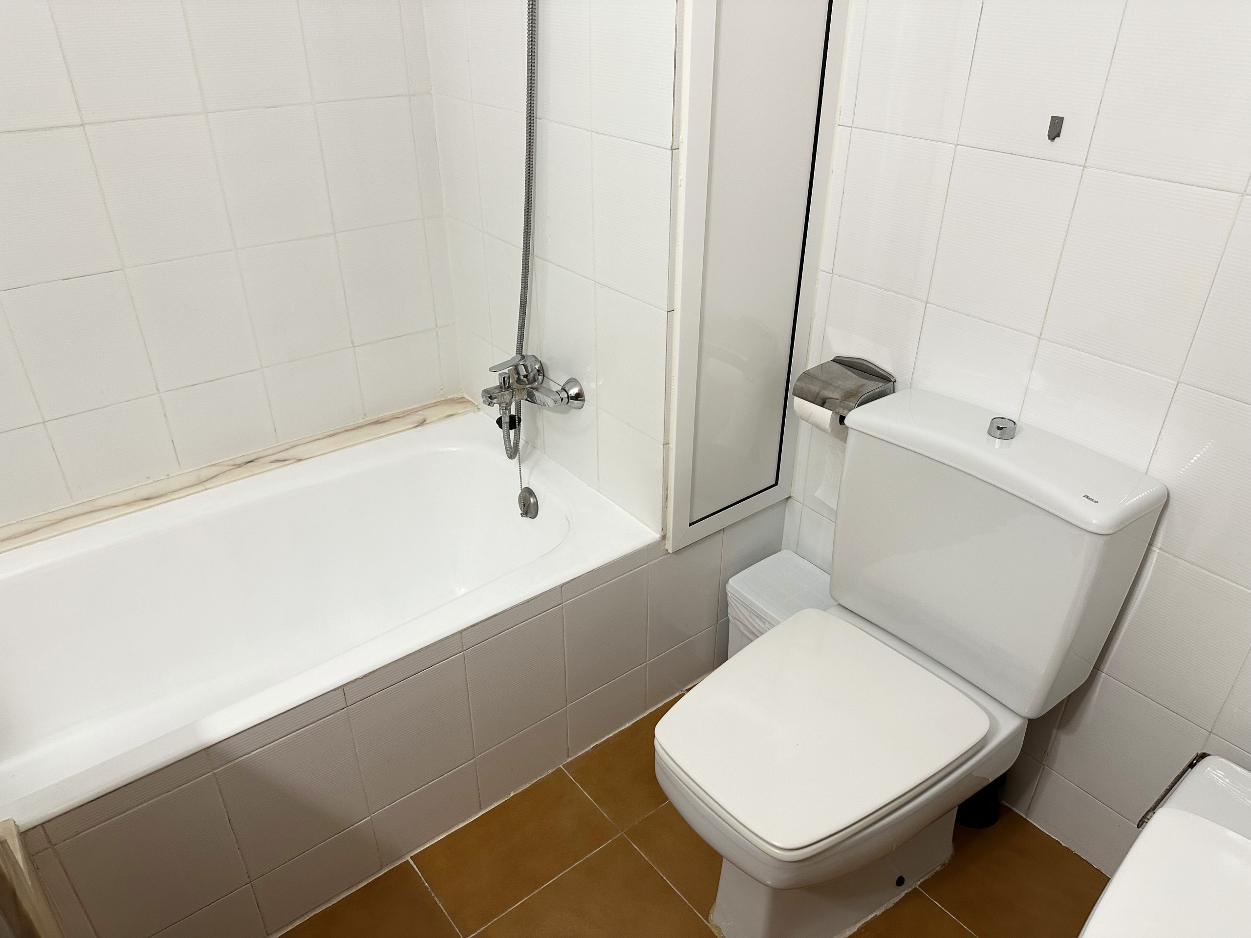Un bany complet amb dutxa i assecador de cabells.