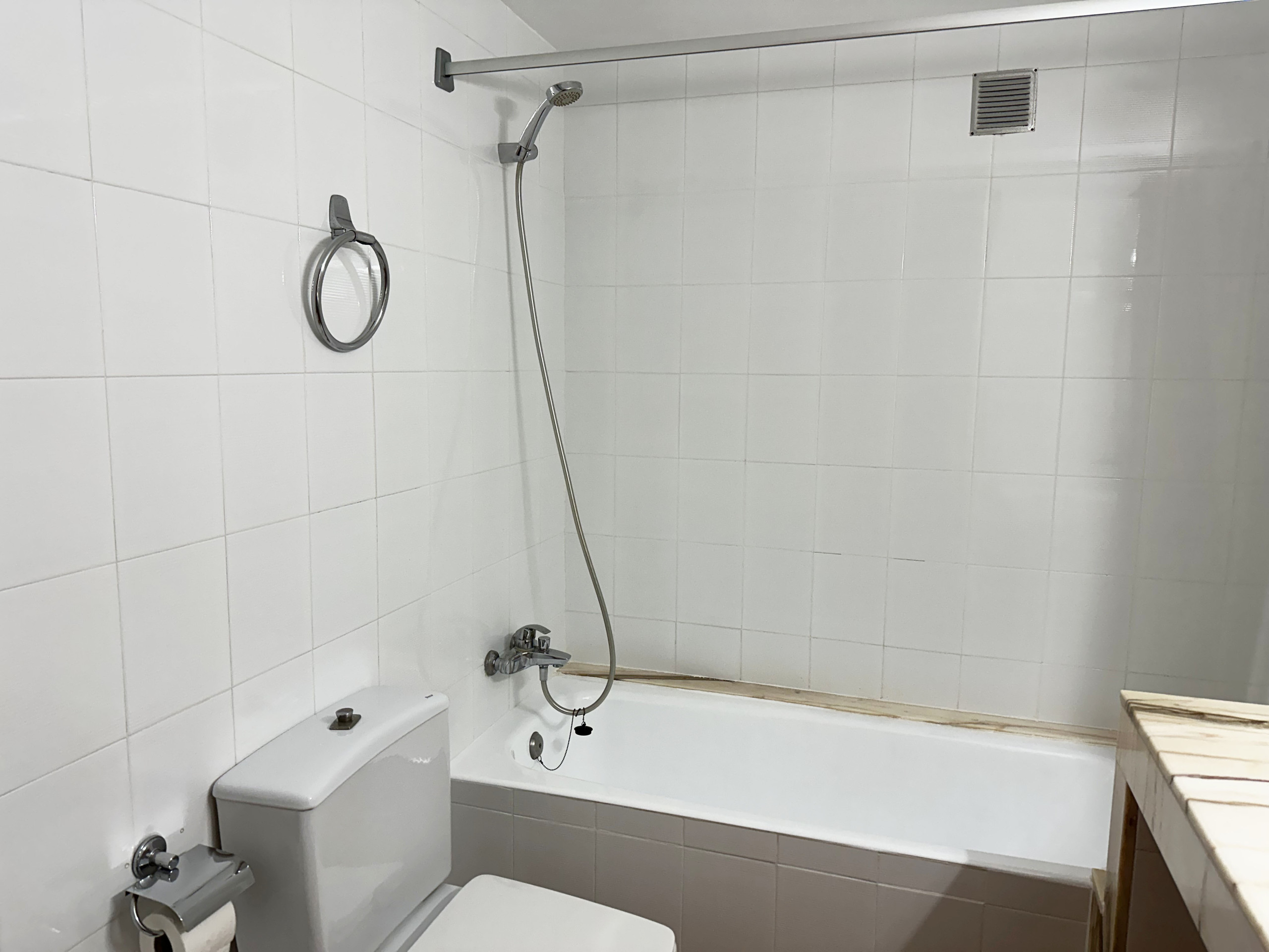 El toallero estaba roto, y al coger la toalla, te quedabas con el en la mano, o se caía. Con el peligro de poder romper un sanitario.