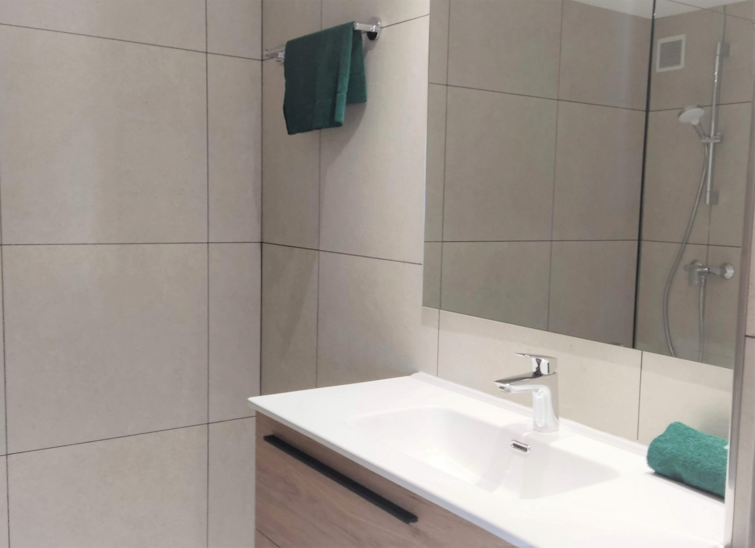 Un bany complet amb dutxa i un lavabo addicional per a més comoditat.