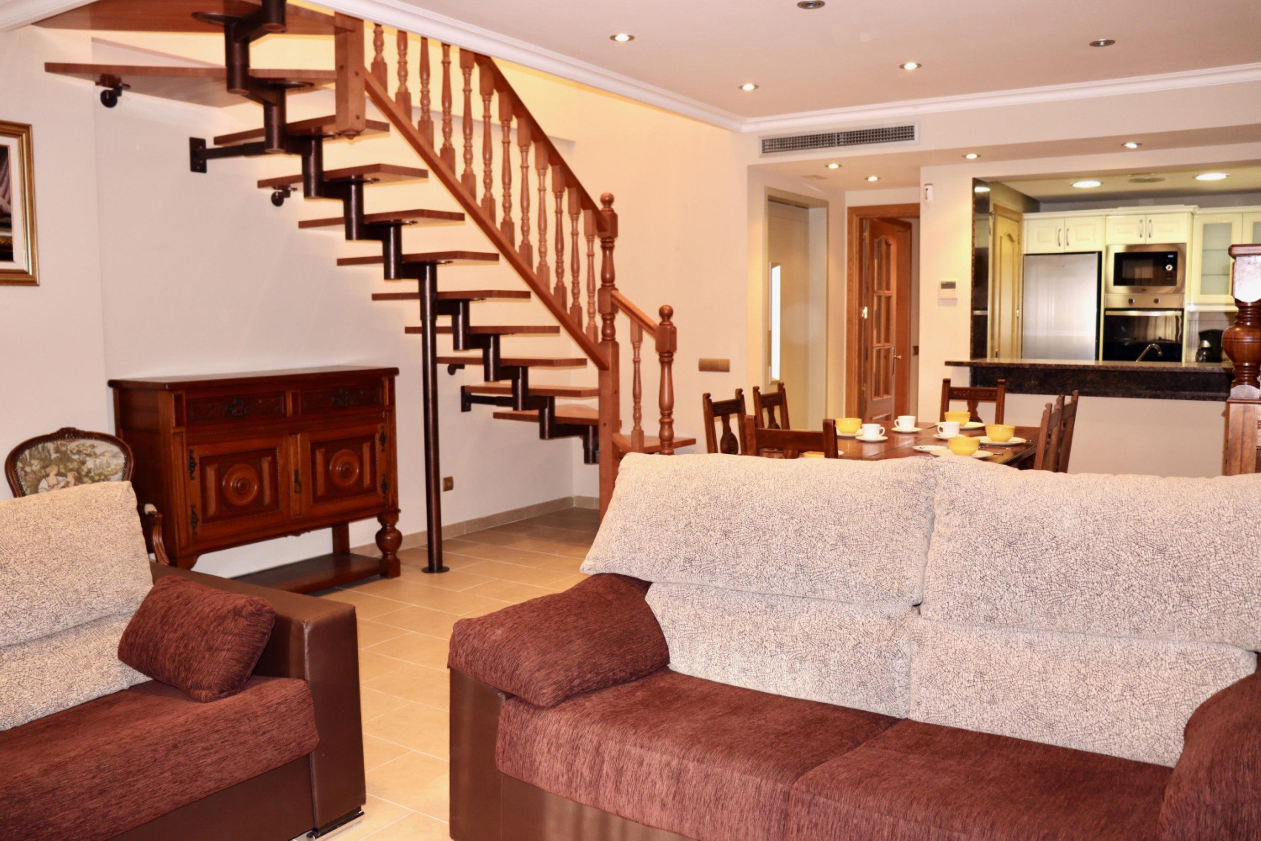 Es tracta d’una casa adossada distribuïda en dues plantes amb capacitat per a 6 persones. La distribució inclou 3 dormitoris, una sala d’estar espaiosa amb accés directe a la terrassa, una cuina americana totalment equipada i dues cambres de bany.