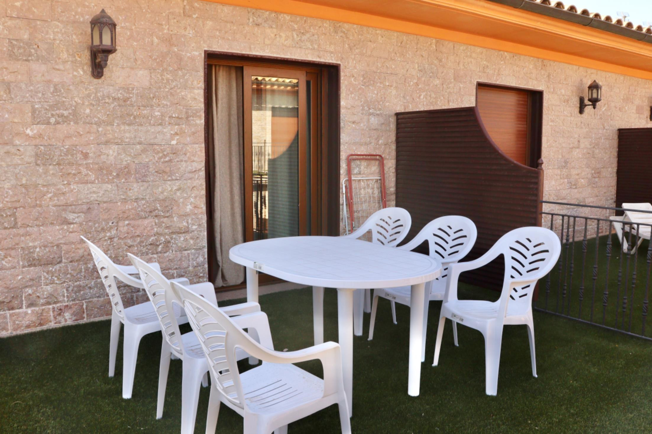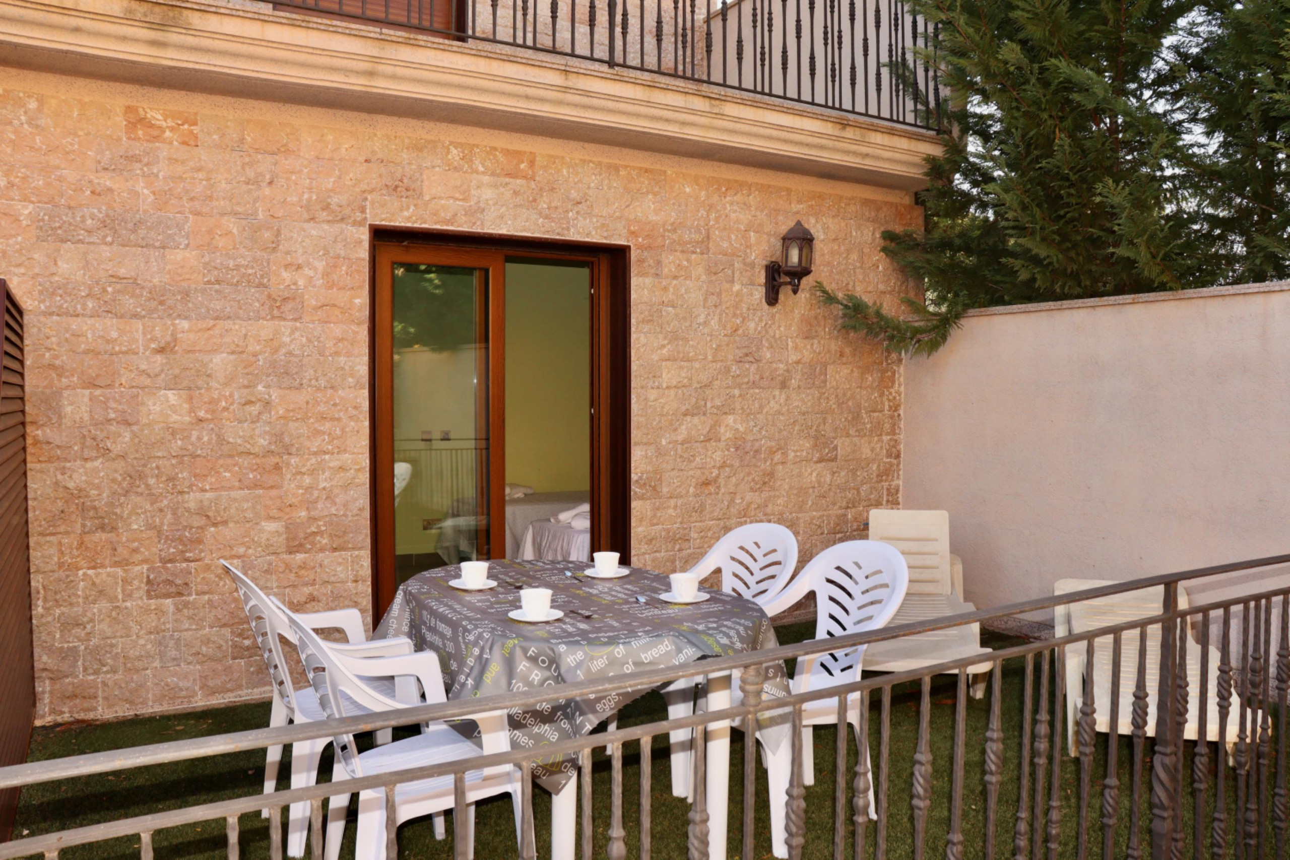 - A l’exterior, hi trobareu una terrassa amb mobiliari de jardí i una balconada amb vistes.